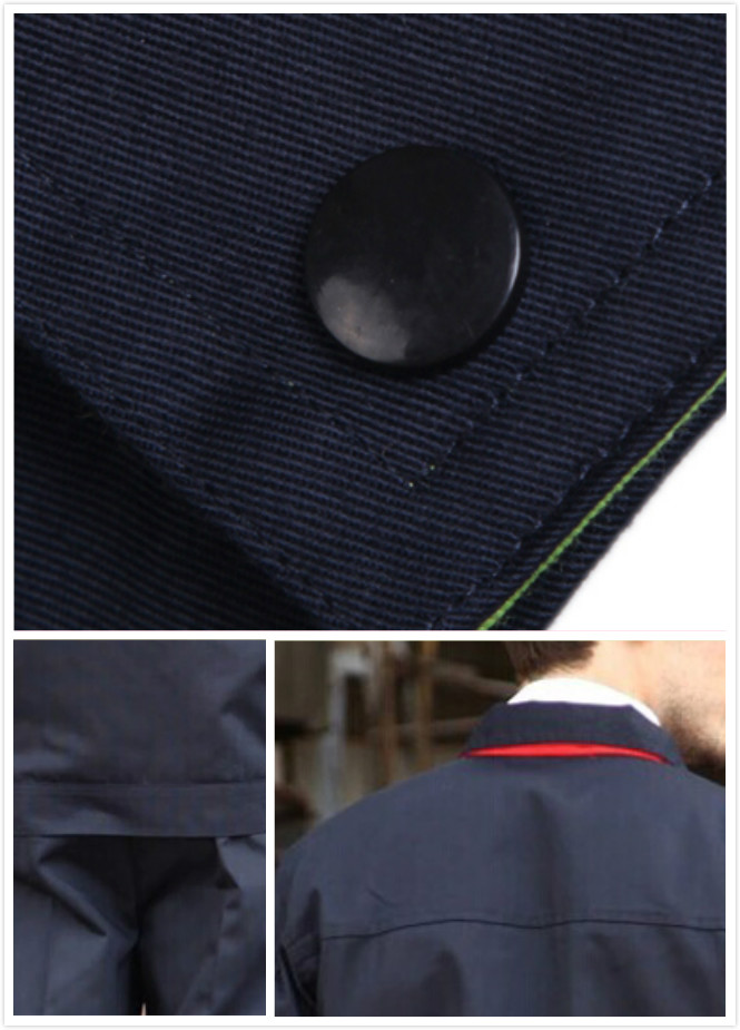 袖口、下擺:以往是采用松緊,現在是采用紐扣式的收縮。這樣更加靈活的符合人自由對這兩個部位的調整。