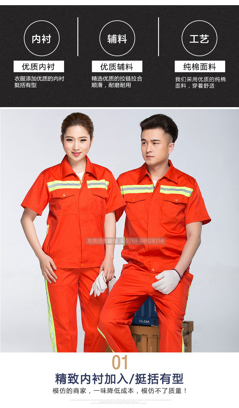 • 工地工作服定制 反光條橙色工作服套裝JL-GC013