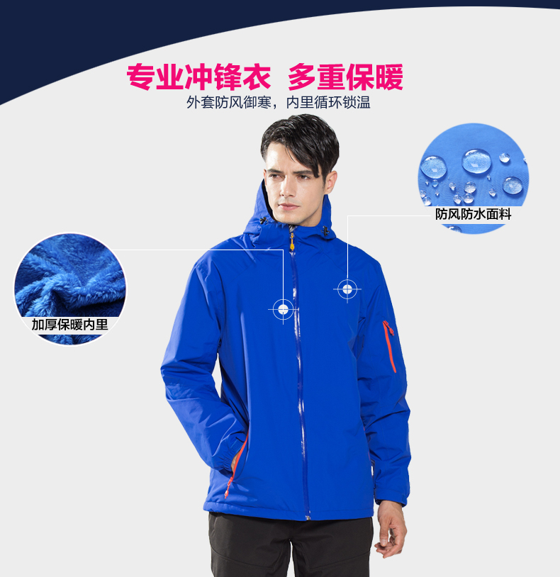 沖鋒衣定制三合一戶外 秋冬防水沖鋒衣套裝JL-566